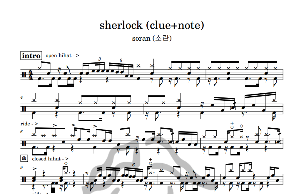 [은규네스튜디오] 드럼악보 soran (소란) - sherlock (clue+note)