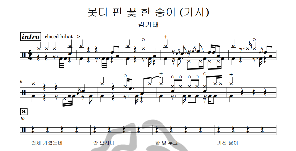 [은규네스튜디오] 드럼악보 김기태 - 못다 핀 꽃 한 송이(가사)