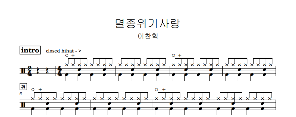 [은규네스튜디오] 드럼악보 이찬혁 - 멸종위기사랑