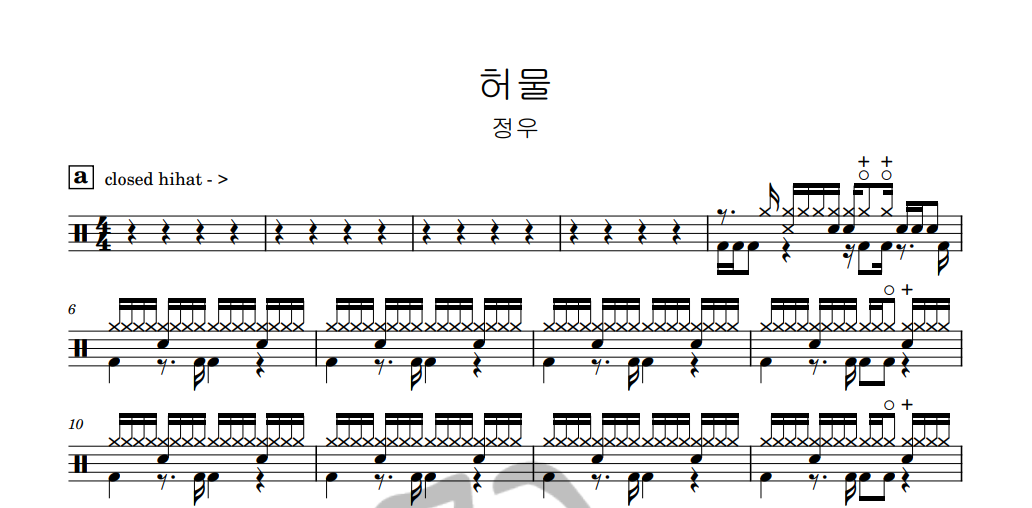 [은규네스튜디오] 드럼악보 정우 - 허물