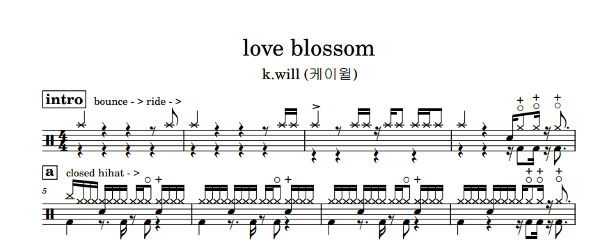 [은규네스튜디오] 드럼악보 k.will (케이윌) - love blossom