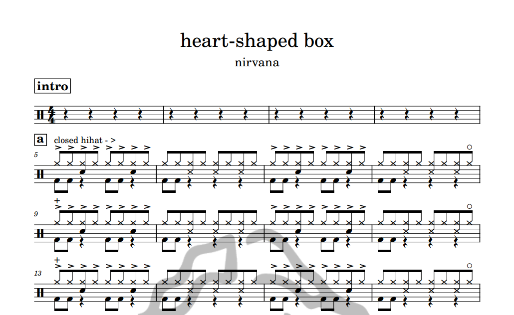 [은규네스튜디오] 드럼악보 nirvana - heart-shaped box