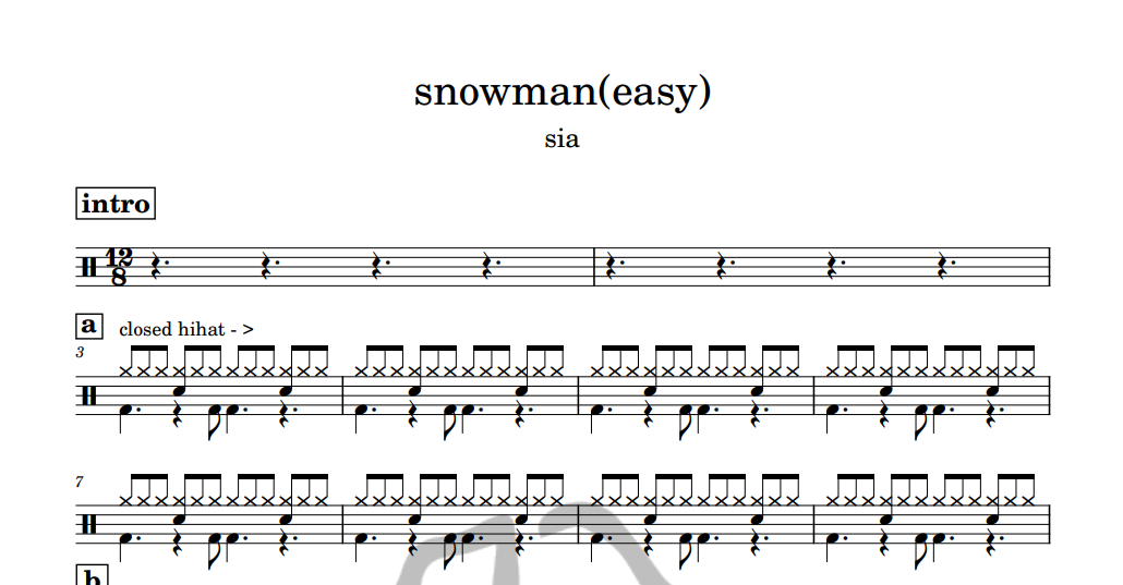 [은규네스튜디오] 드럼악보 sia - snowman(easy)