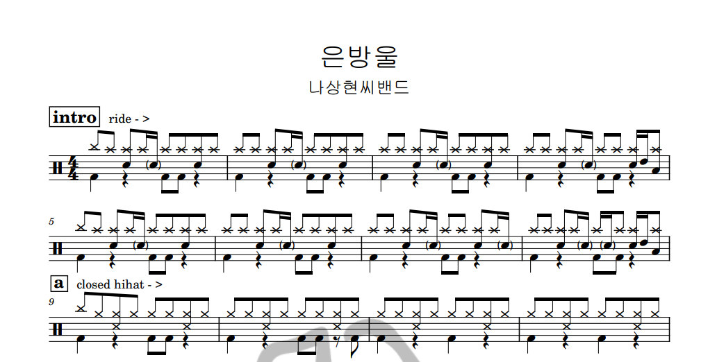 [은규네스튜디오] 드럼악보 나상현씨밴드 - 은방울