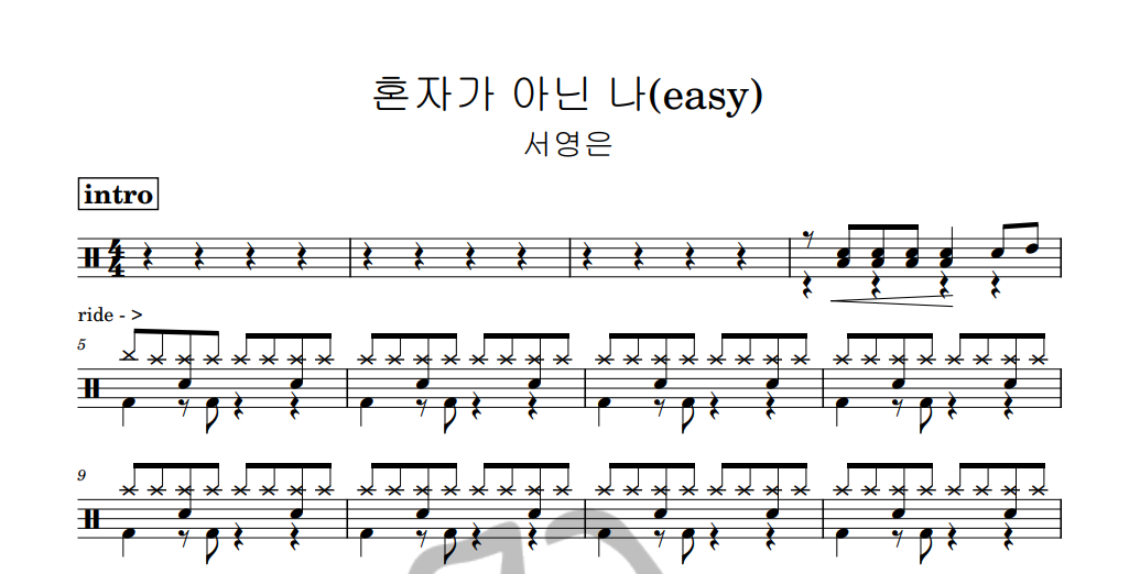 [은규네스튜디오] 드럼악보 서영은 - 혼자가 아닌 나(easy)