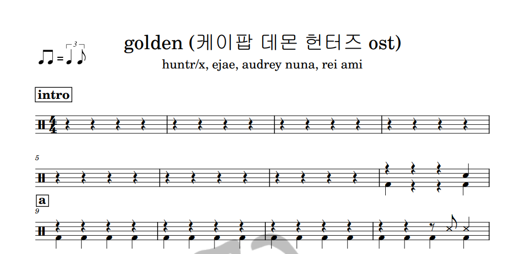 [은규네스튜디오] 드럼악보 huntr/x, ejae, audrey nuna, rei ami - golden (케이팝 데몬 헌터스 ost)