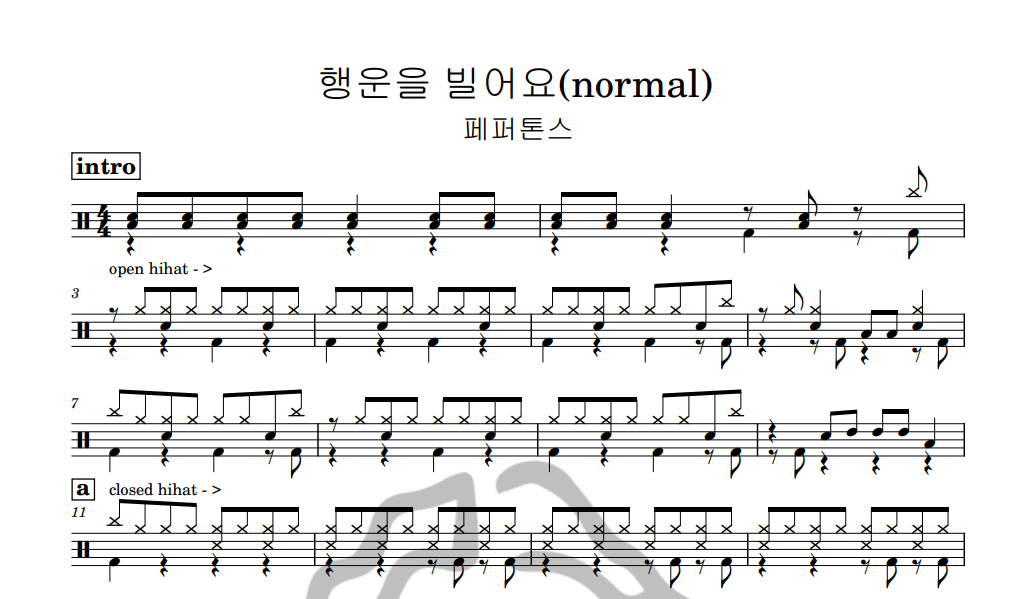 [은규네스튜디오] 드럼악보 peppertones (페퍼톤스) - 행운을 빌어요(normal)