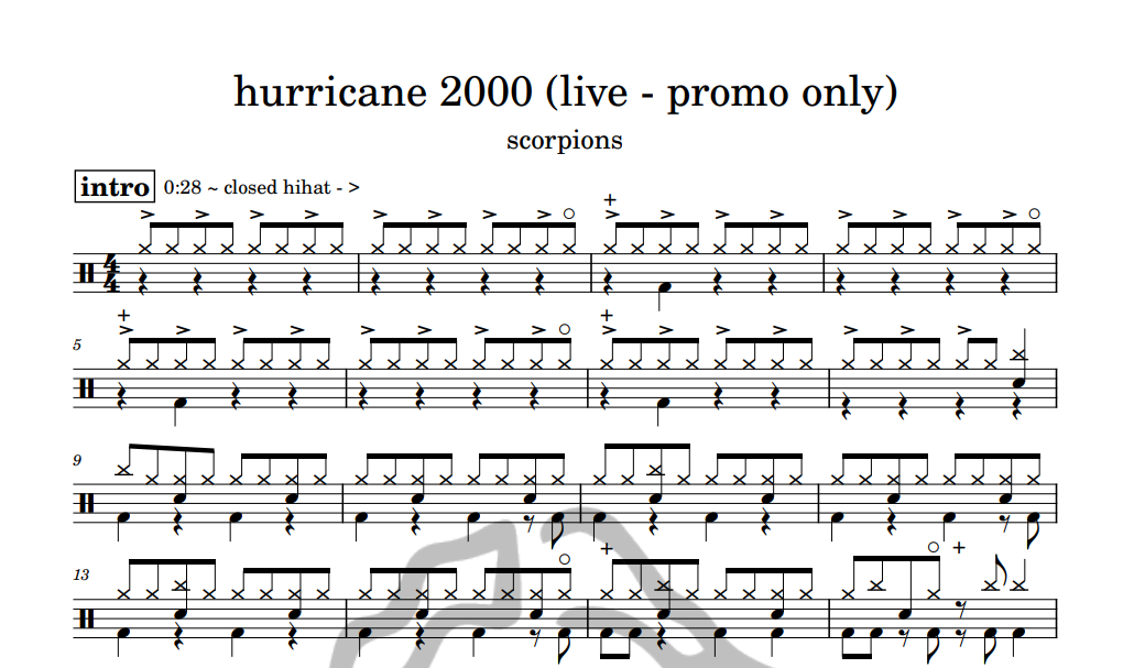 [은규네스튜디오] 드럼악보 scorpions - hurricane 2000 (live - promo only)