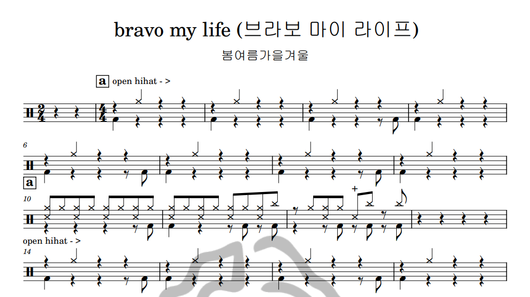 [은규네스튜디오] 드럼악보 봄여름가을겨울 - bravo my life