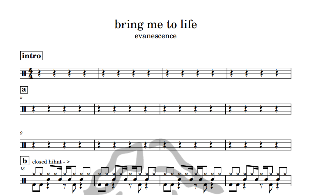 [은규네스튜디오] 드럼악보 evanescence - bring me to life