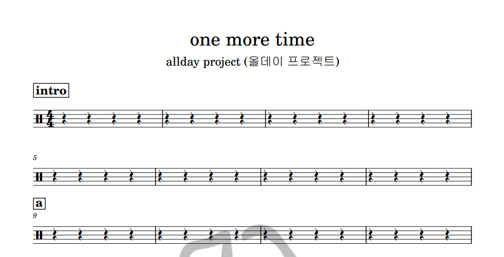 [은규네스튜디오] 드럼악보 allday project (올데이프로젝트) - one more time