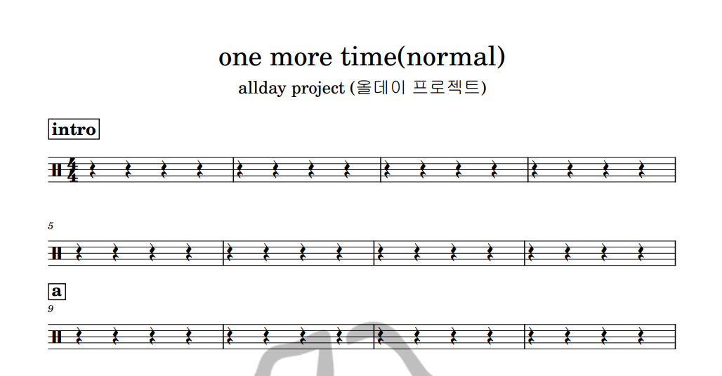 [은규네스튜디오] 드럼악보 allday project (올데이프로젝트) - one more time(normal)