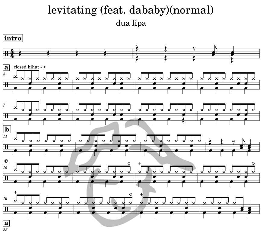 [은규네스튜디오] 드럼악보 dua lipa - levitating (feat.dababy)(normal)