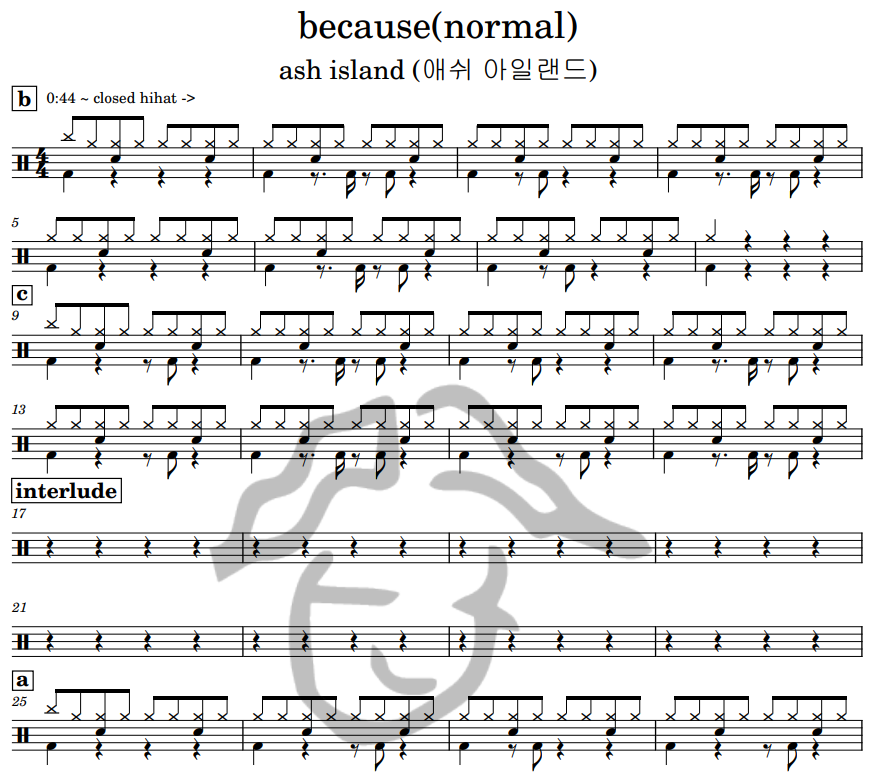 [은규네스튜디오] 드럼악보 ash island (애쉬 아일랜드) - because(normal)