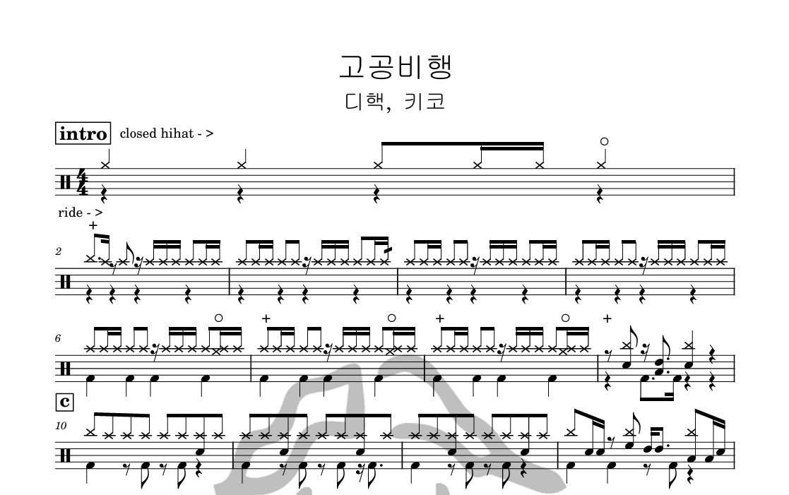 [은규네스튜디오] 드럼악보 d-hack (디핵), kik5o (키코) - 고공비행