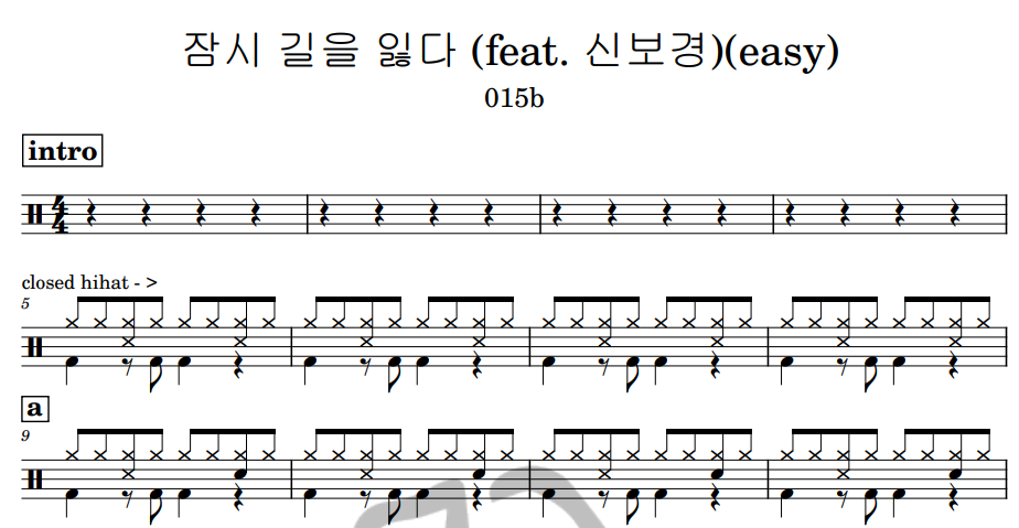 [은규네스튜디오] 드럼악보 015b - 잠시 길을 잃다 (feat. 신보경)(easy)