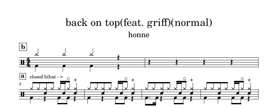 [은규네스튜디오] 드럼악보 honne, griff - back on top(normal)