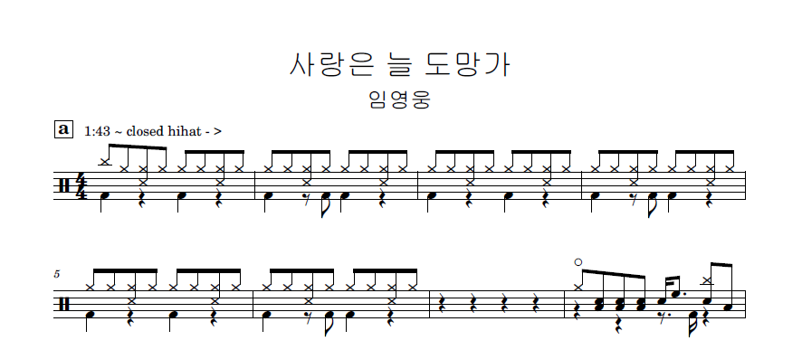 [은규네스튜디오] 드럼악보 임영웅 - 사랑은 늘 도망가