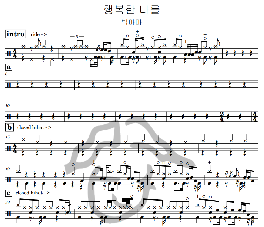 [은규네스튜디오] 드럼악보 빅마마 - 행복한 나를