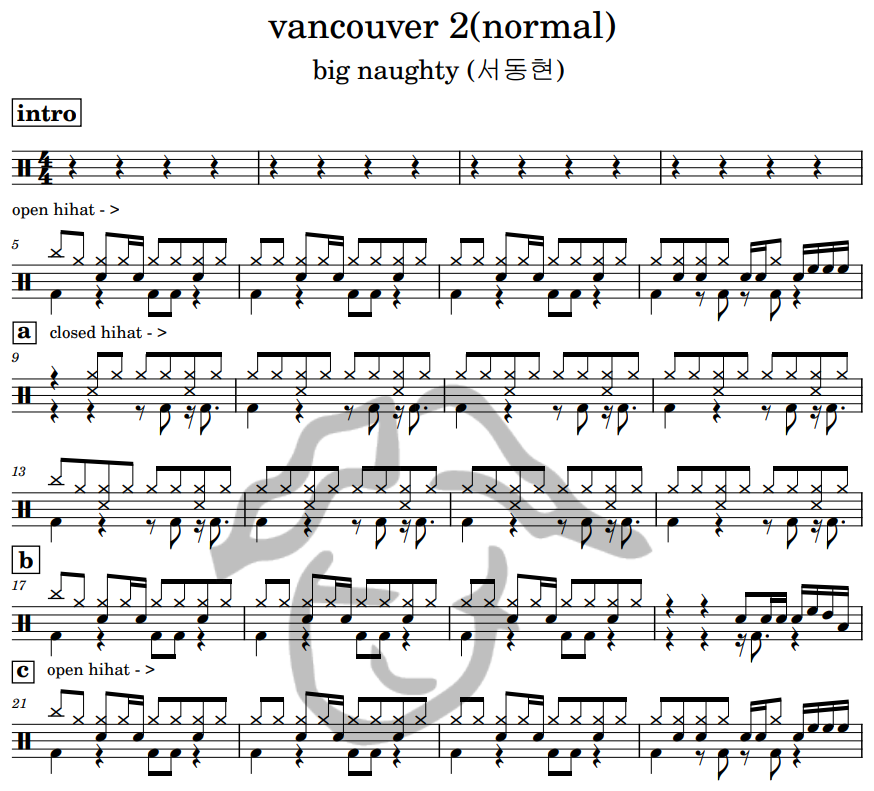 [은규네스튜디오] 드럼악보 big naughty (서동현) - vancouver 2