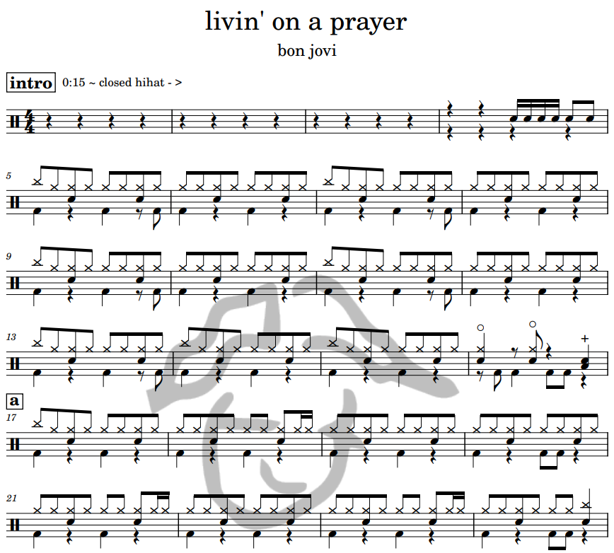 [은규네스튜디오] 드럼악보 bon jovi - livin' on a prayer