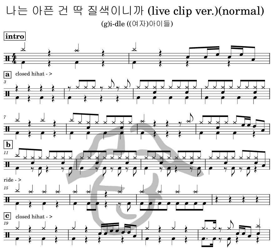 [은규네스튜디오] 드럼악보 (g)i-dle ((여자)아이들) - 나는 아픈 건 딱 질색이니까 (live clip ver.)(normal)