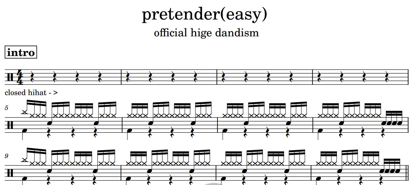 [은규네스튜디오] 드럼악보 official hige dandism - pretender(easy)
