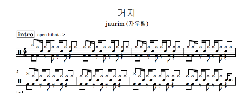 [은규네스튜디오] 드럼악보 jaurim (자우림) - 거지