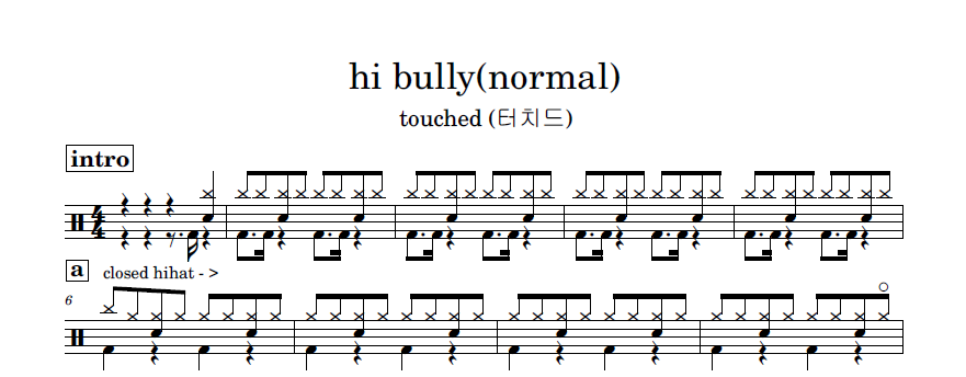 [은규네스튜디오] 드럼악보 touched (터치드) - hi bully(normal)