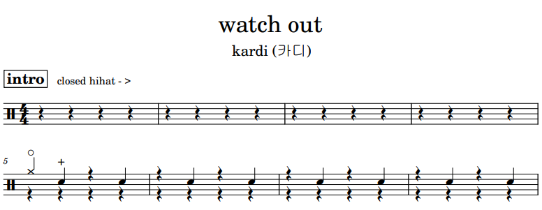 [은규네스튜디오] 드럼악보 kardi (카디) - watch out
