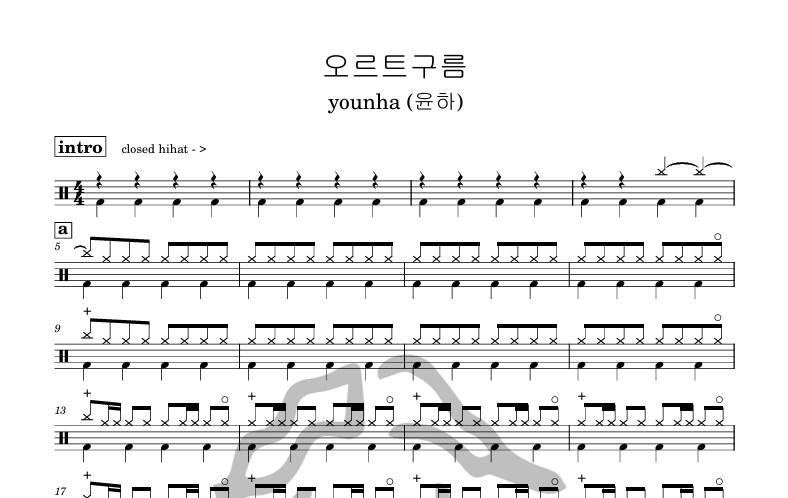 [은규네스튜디오] 드럼악보 younha (윤하) - 오르트구름