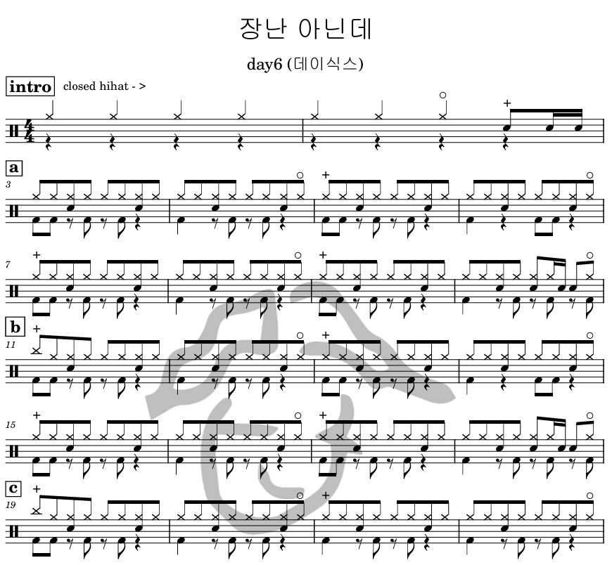 [은규네스튜디오] 드럼악보 day6 (데이식스) - 장난 아닌데