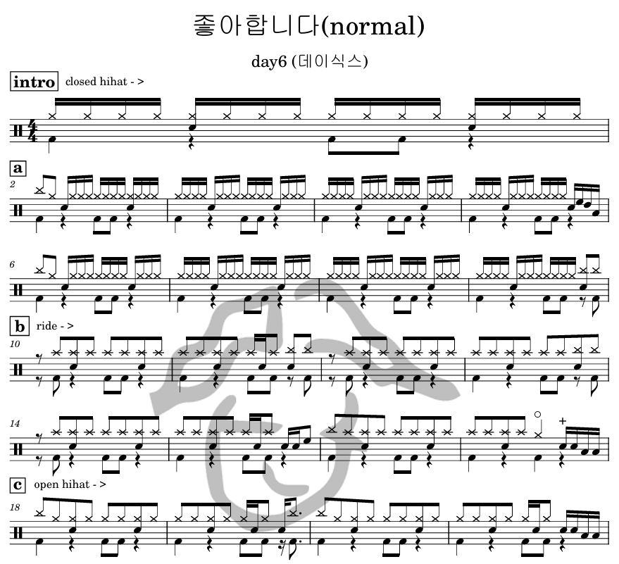 [은규네스튜디오] 드럼악보 day6 (데이식스) - 좋아합니다(normal)